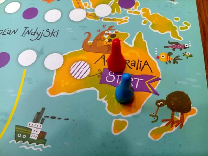 Chyba najprostszą grą z wymienionych jest „Świat”. Wystarczy chodzić pionkami po planszy i odgadywanie poprawnych odpowiedzi w quizie oraz wskazywaniu na czas obrazków. Świetna, angażująca gra, z której można się wiele nauczyć. Na przykład: w którym roku miało miejsce pierwsze zimowe zdobycie Mount Everestu, co jest symbolem Australii, nad jaką rzeką leży Rzym, czy kto był słynnym katalońskim architektem.