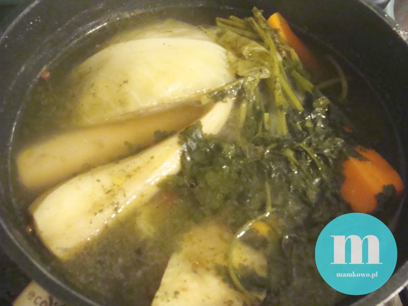 – gotować 1,5 godz. a potem dodać: